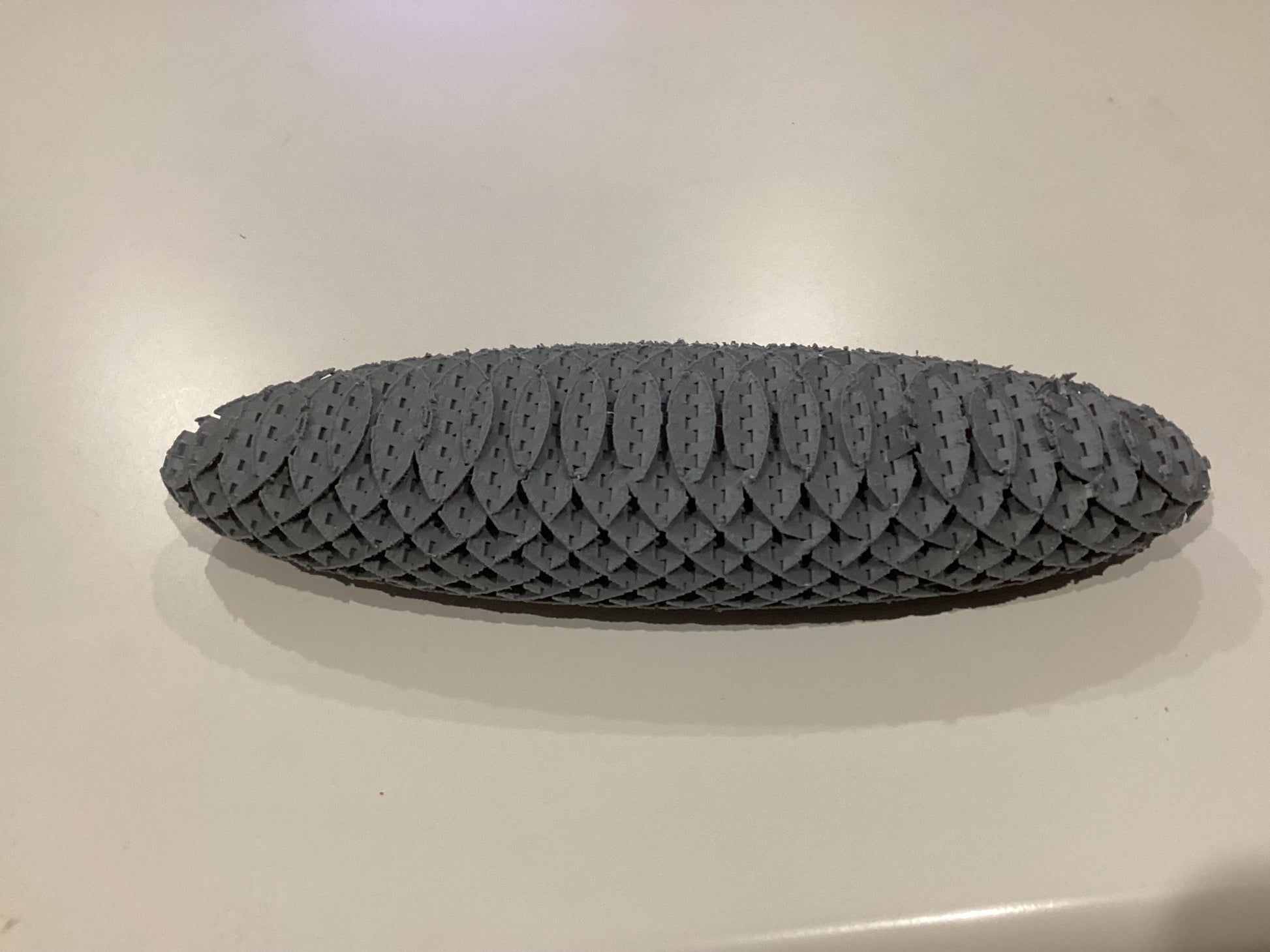 This 3D-printed flexi pod features a layered, scale-like surface that shifts and flows as you roll it in your hands. Its smooth, tapered shape combined with hundreds of interlocking flexible segments makes it incredibly satisfying to squeeze, twist, and fidget with. The texture gives it a unique “creature scale” feel, while the flexible core lets it bend without losing its form. Perfect as a stress reliever, display piece, or sensory fidget for anyone who loves tactile designs.